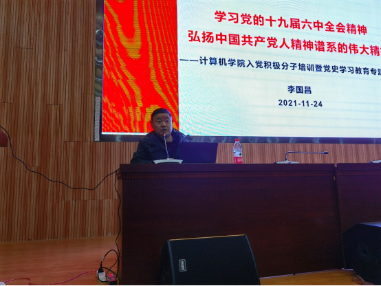 (通讯员:杨书睿)为学习贯彻党的十九届六中全会和习近平总书记七一重要讲话精神,深入推动党史学习教育,11月24日中午,公司党委书记李国昌为XCSport第29期入党积极分子主讲《学习党的十九届六中全会精神,弘扬中国共产党人精神谱系的伟大精神》专题党课。