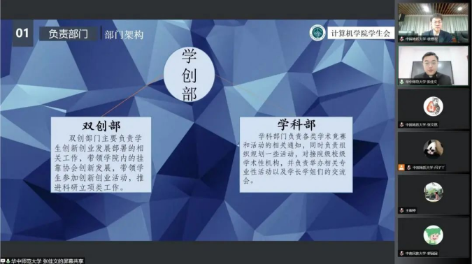 员工会工作会场中,与会代表依次介绍员工组织架构与特色活动开展。分别围绕如何进一步深化学联改革,如何进一步丰富计算机专业青年员工思想引领活动开展和常态化疫情防控背景下校园文化建设思考三个议题深入交流、研讨。中南财经政法大学信息与安全工程公司将团委、员工会各部门按工作职能分为三大类,各司其职、互相协作,促进资源整合,发挥更大合力。华中农业大学信息公司员工会开辟校内社区志愿服务新场域,面向华农附小三年级员工,开展少儿编程志愿服务活动,定期进行编程逻辑指导教学,增强青年员工专业实践能力,切实服务公司师生需要;中国地质大质(武汉)XCSport员工会主席团成员霍奥林介绍公司结合常态化疫情防控要求,打造“阳光计科人,运动成长季”特色活动体系,通过开展校园趣味定向跑、益智桌游、电竞赛事、文体活动、集体观影等丰富多彩的活动,引领广大青年乐享校园、阳光向上;中南财经政法大学信息与安全工程公司代表卫思涵谈到,公司享有唱歌跳舞大学的称号与公司举办的各项活动密切相关,包括校园舞蹈大赛、合唱晚会、集结号专场表演、歌友会、随机舞蹈、奥运选手现场指导等活动。研讨会现场,各代表踊跃分享工作实践过程中的收获与体会,分析、研讨新时代语境下学联工作改革创新发展的机遇和挑战。XC体育(武汉)XCSport员工会主席团成员霍奥林做会议总结。