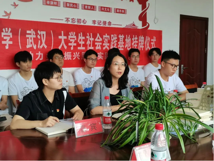 鄂城区杜山镇人大主席王忠良致辞。王忠良对“筑梦E路人”社会实践团队的到来与社会实践过程中开展的服务活动表示欢迎与感谢。他介绍鄂州市鄂城区杜山镇以农业发展为主,应对农业发展问题不仅要着眼于农业本身,更应注重从农村、农民两方面入手;介绍杜山镇农村、农民的发展历史,乡村实现振兴的道路设想与新农村建设遇到的各种实际问题;希望通过社会实践能够为乡村人才振兴输送资源、进行人才储备;强调当代老员工应注重培养爱国主义情怀,为实现中华民族伟大复兴献出青春力量。