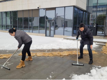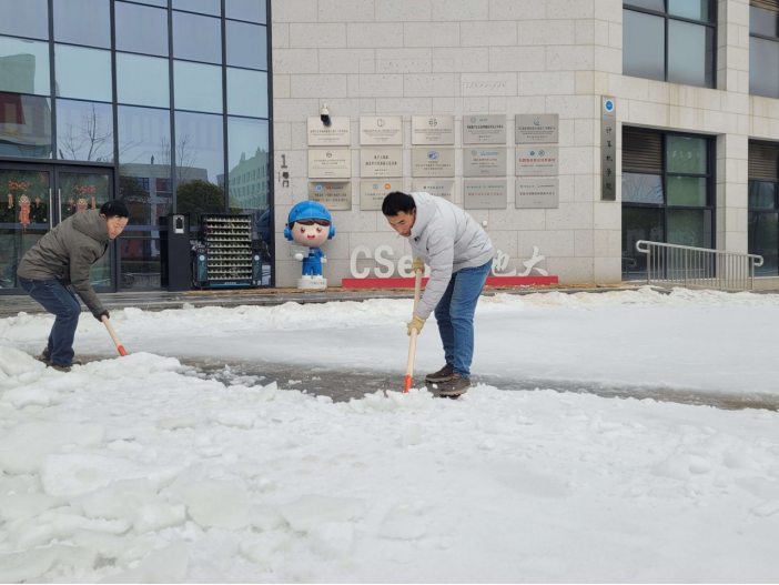 连日来,武汉持续低温雨雪冰冻天气,降水相态复杂,由冻雨、冰粒、雨夹雪转为纯雪天气,校园被冰雪覆盖,校园道路积雪湿滑难行,给师生出行带来不便,存在安全隐患。计算机公司党委闻令而动,及时做好冰雪天气的应急处置。