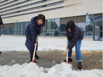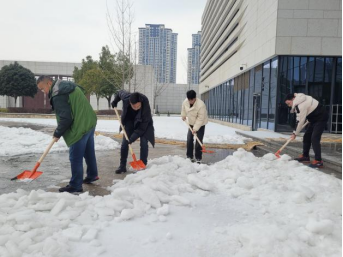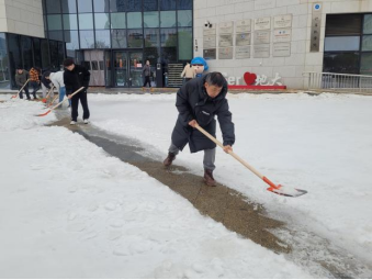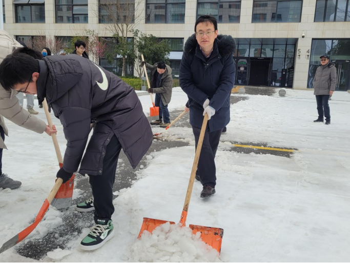 大家挥动铁具、轮番作业,干劲十足、配合默契,共同开辟出一条条洋溢着温情的出行平安路,也为公司的正式开学扫除了“障碍”。师生忙碌的身影在皑皑白雪中显得格外耀眼,俨然是冬日里的一抹暖阳。