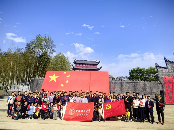 最后,全院教工党员前往黄麻起义和鄂豫皖苏区革命烈士纪念园,整齐列队,向革命烈士敬献花篮、三鞠躬致敬。鲜红的党旗前,全体党员举起右拳,在纪念碑下,面对党旗,在李国昌书记的带领下,重温了入党誓词:“我志愿加入中国共产党……随时准备为党和人民牺牲一切,永不叛党”。
