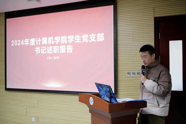 研究生专硕第六党支部书记向晨风谈到:今天很荣幸参加公司党支部书记述职大会,很荣幸上台汇报工作。这不仅是工作汇报,更是向其他党支部书记学习的宝贵机会。教职工支部工作部署有条不紊、成果丰硕。本科生、研二和研三支部百花齐放,各有建树。作为聆听者,我不断学习着他们的管理方法和成熟经验。虽然研一党支部因为成立时间较短,成果不够突出,但在公司党委的正确领导和全体支部成员的积极配合下,我们一定能有所成就。我们作为党支部书记,肩负着同学们的信任,应该切实担负起支部组织管理工作的责任。公司领导们的认可和夸奖是一种鞭策,期许和鼓励着我们带领党支部走向新的未来。