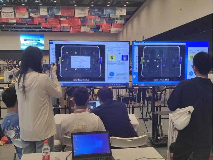 10月14日上午,FIRA仿真组11vs11项目比赛也正式开始。经过相对轻松的小组赛后,进入淘汰赛,我们CUG团队在11vs11项目中也展现出了非凡实力。为了更好地分析己方和对方的优势和弱点,我们进行了赛程中的录像以便于我们后续的分析和策略完善。10月14日下午,FIRA仿真组11vs11项目决赛,我们团队在比赛过程中不断调整策略,优化算法,克服了各种挑战和困难。裁判们严格公正地执行规定,确保比赛的公平性和公正性。10月15日上午,FIRA仿真组5vs5项目决赛,每个人都保持高昂的斗志,沉浸于紧张的比赛局势中。最终,我们获得FIRA仿真组5vs5项目季军、一等奖,FIRA仿真组11vs11项目季军、一等奖。
