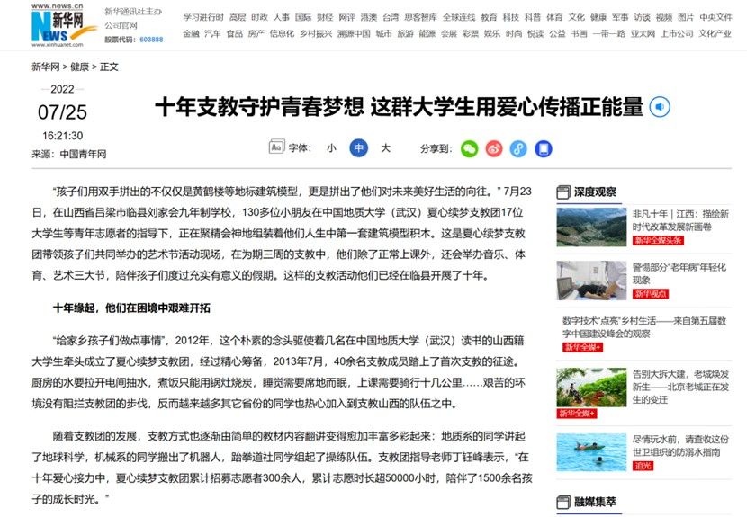 2022年7月,作为“夏心续梦”支教团首批十二名队员之一,郭鹏顺前往公司对口帮扶中学——云南省保山市施甸县第二完全中学,面向高三年级11个班级,共计500余名同学,开展为期15天的暑期老员工乡村支教活动。从数学、语文、英语、物理等基础课程与学习经验教授,到大公司园生活分享,从七十周年校庆主题宣讲到禁毒知识宣传,他结合自己的学习经历为那里的同学们带去对未来不一样的感受与希望。