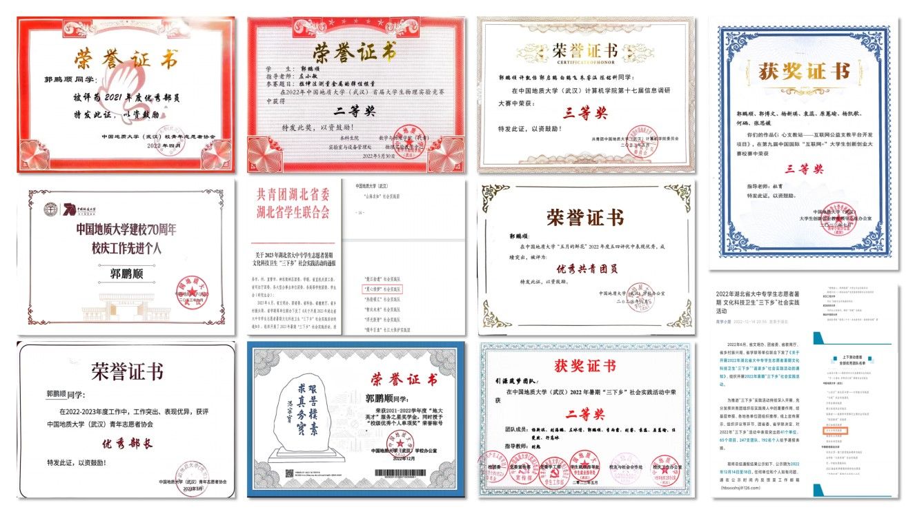 两年支教经历,郭鹏顺从队员到队长,再到团长,带领团队连续两年获评湖北省大中专员工志愿者暑期文化科技卫生“三下乡”社会实践优秀团队、暑期三下乡社会实践校级奖项4项、并成功入选2023年湖北省“本禹志愿服务队”创建团体,团队事迹被第四纪、地大新闻网、保山日报、中国青年网、新华网等各级媒体报道13次,“夏心同德,携手续梦”的精神一直鼓励着他义无反顾地走在乡村振兴的路上,从乡村走出来,再反哺乡村,郭鹏顺用自己的努力展现着属于当代青年的责任与担当。