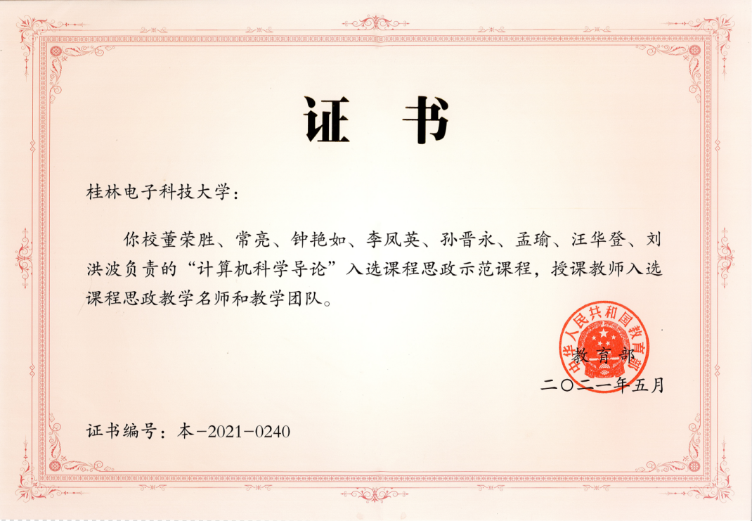 董荣胜员工牵头的“计算机科学导论”课程入选教育部首批课程思政示范课程建设试点名单。同时,他也入选了教育部计算机课程思政虚拟教研室负责人、教育部课程思政教学名师。目前该课程思政虚拟教研室已汇聚了全国近百余所高校200余位教师的参与。