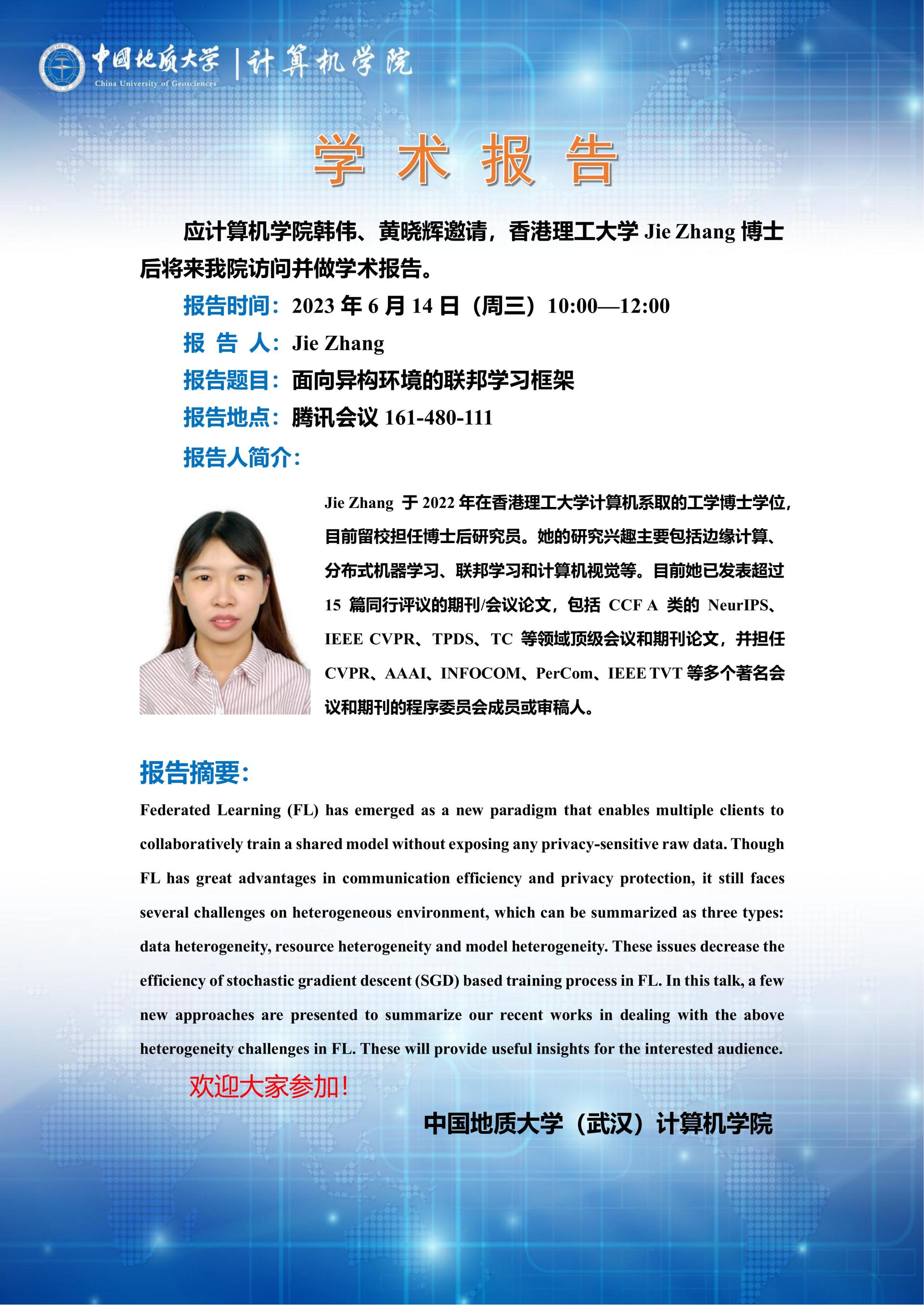 学术报告:香港理工大学张婕——面向异构环境的联邦学习框架