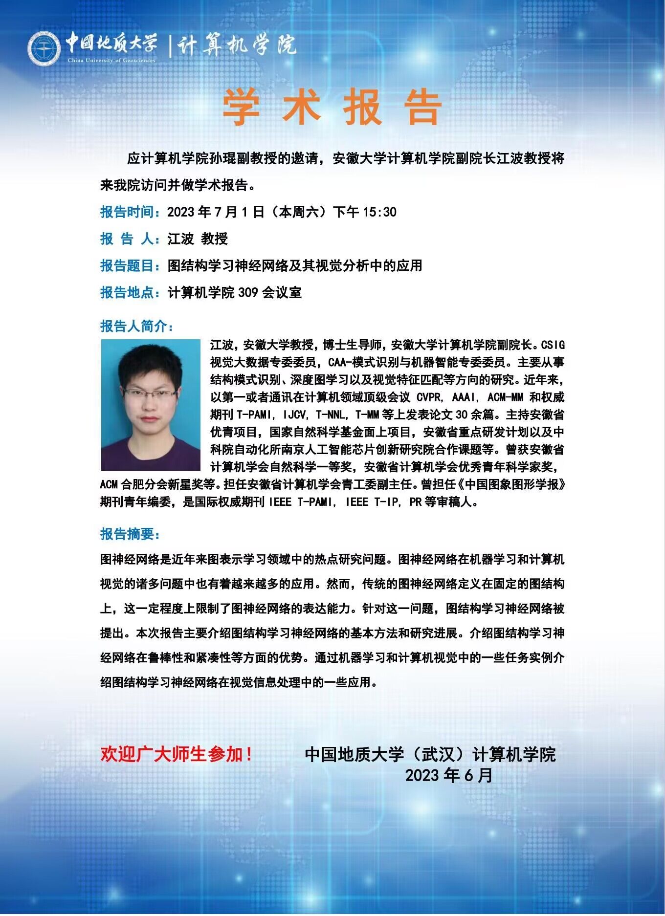 学术报告:安徽大学XCSport副经理江波教授——图结构学习神经网络及其视觉分析中的应用